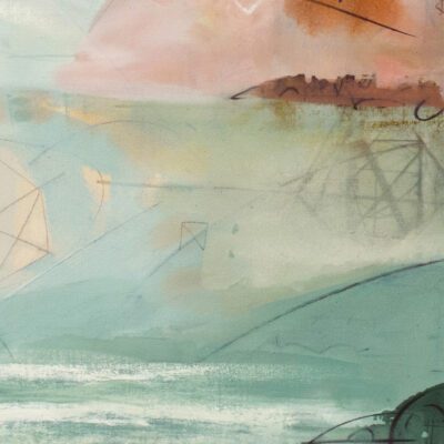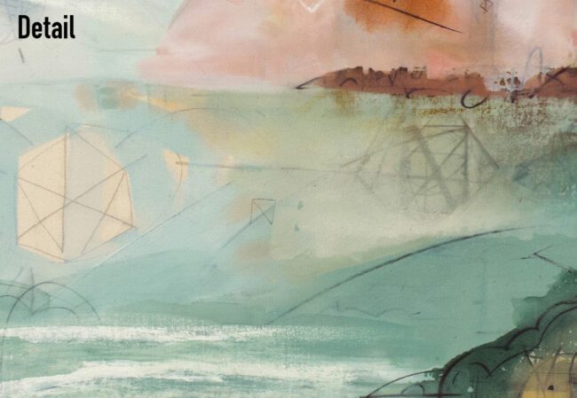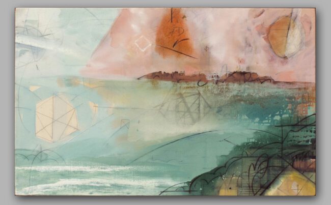 Oil and charcoal on canvas on panel. 30h x 48w inches. No frame required. Signed on left edge.