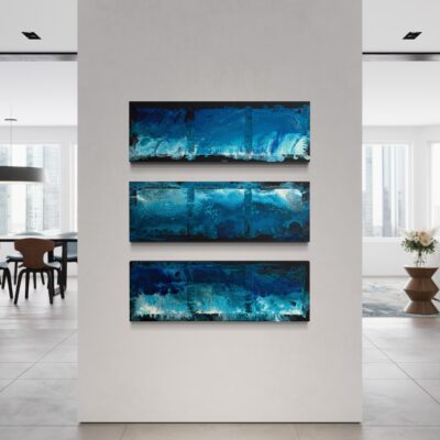 – Triptych – h.42in x w.36in x d.2in; each panel h.12in x w.36in x d.2in