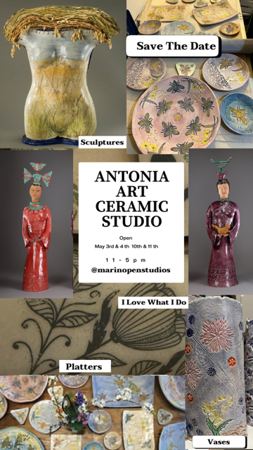 Various sculptures and Functional pieces by Antonia Tuppy Lawson Published: April 6, 2025 (9 months ago) Contact For Pricing CategoryART FOR THE... / BedroomART MEDIUM - 3D ART / CeramicsART FOR THE... / Grand EntryART FOR THE... / Kitchen/Breakfast NookART FOR THE... / Living RoomCOLOR THEME / Multi-ColorsART MEDIUM - 3D ART / PotteryART MEDIUM - 3D ART / SculptureVases, Platters, Sculptures all unique and hand made Send Message Your Name * Your Email * Subject * Message * Website Address
