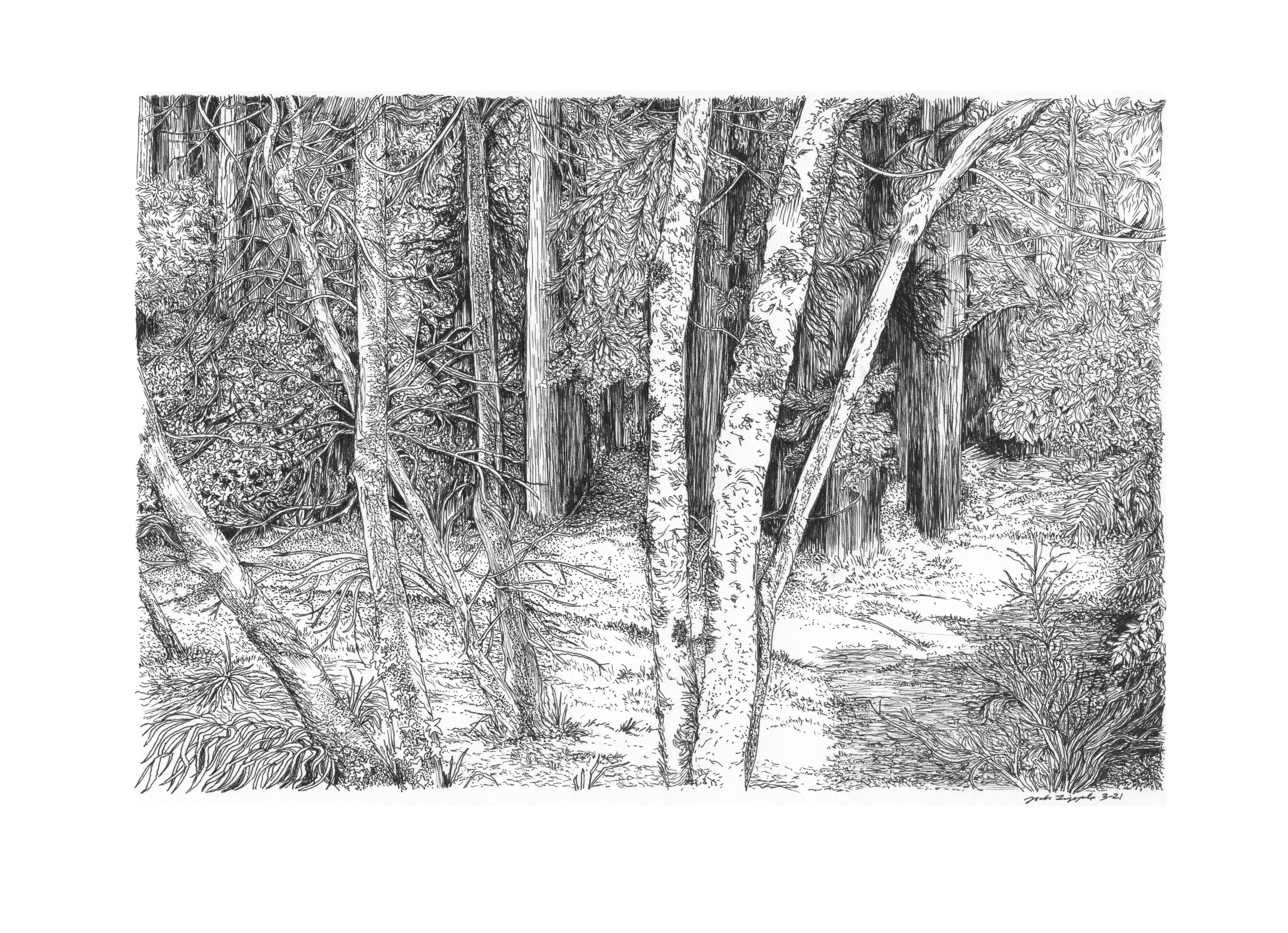 When my friend last lived in Mill Valley, she had a wide view of this forested section of Mill Creek that I tried to capture.