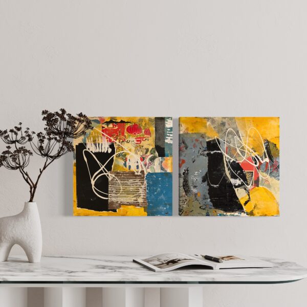 14”x14” acrylic/mixed media collage on birch plywood panel
