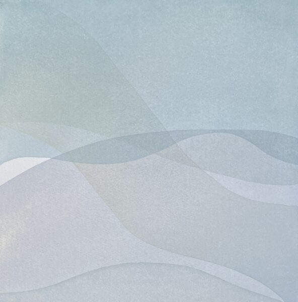 Walking on Water – 10″ x 10″ watercolor on 300# Fabriano Artistico paper with deckled edges and framed