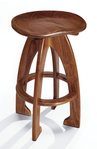 My most popular design, made with a combination of modern tools, old fashion hand tools and elbow grease, this is a sturdy, durable functional work of art. Chosen to be an example of Jennifer Garner’s woodworking skills on the Apple series, “The Last Thing He Told Me.” Sturdy, well made, easy to maintain, designed to give a lifetime of pleasure and use. 26″H x 17″W x 14″D, available as a barstool, 30″H and in all available varieties of wood. The finish is multiple applications of a hand rubbed mix of oil and polyurethane. Contact me for more information.