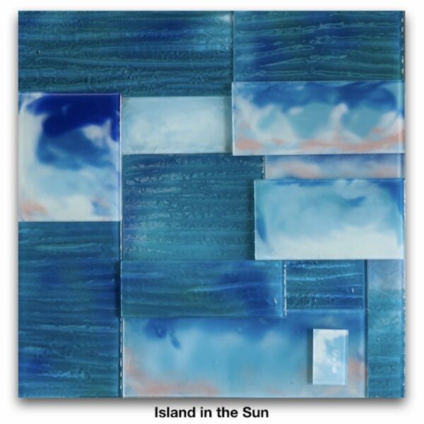 This 16 inch square waterscape in my WaterSong series is created using old window glass – one of the least recycled materials. The assembled vignettes are enameled kiln cast and may be sand blasted. They are meant to focus on the wonder and beauty of our environment and our shared responsibility to care for it. The pieces in the series are surprisingly light weight and are designed to hang well alone or several together make a notable grouping.
