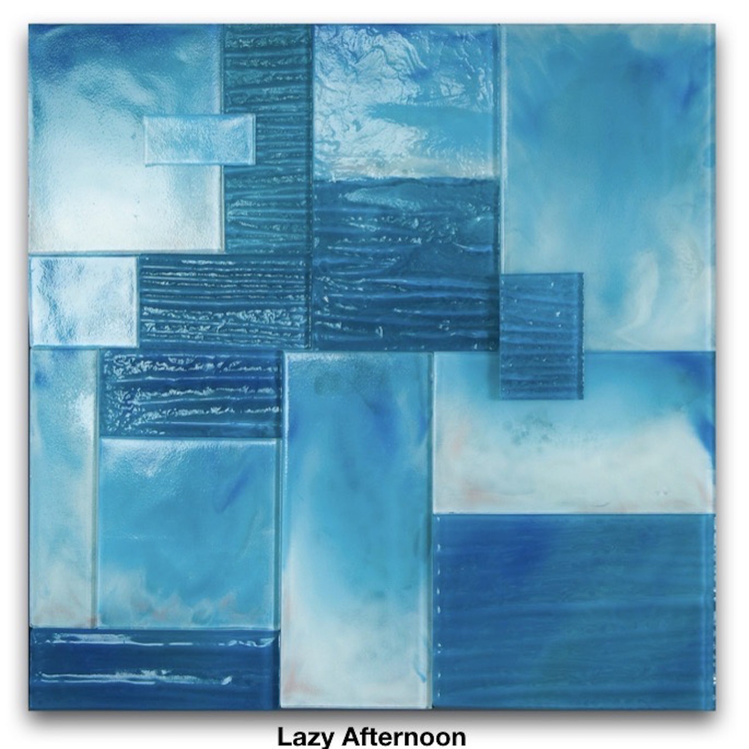 This 16 inch square waterscape in my WaterSong series is created using old window glass – one of the least recycled materials. The assembled vignettes are enameled kiln cast and may be sand blasted. They are meant to focus on the wonder and beauty of our environment and our shared responsibility to care for it. The pieces in the series are surprisingly light weight and are designed to hang well alone or several together make a notable grouping.