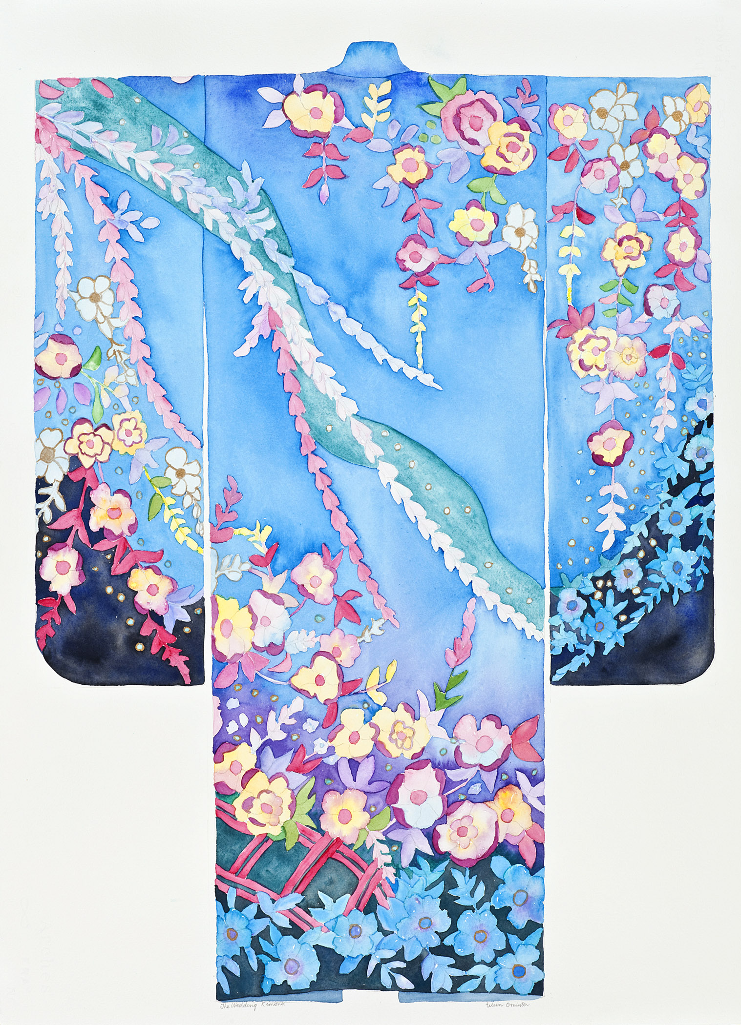 Wedding Kimono is an original framed watercolor of the wedding kimono that my daughter-in-law wore when she married my son.