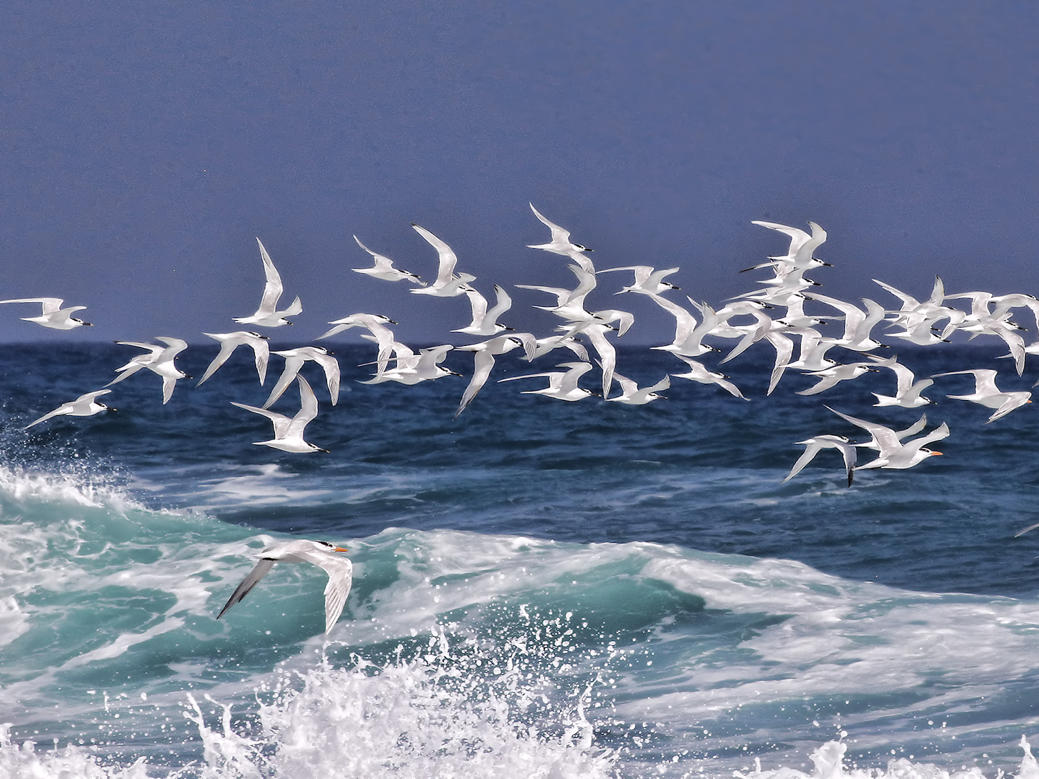 These magnificent rock pillars guard the southern shore of the Mendocino peninsula. This photo was taken just as the early sunlight brushes their tops.