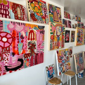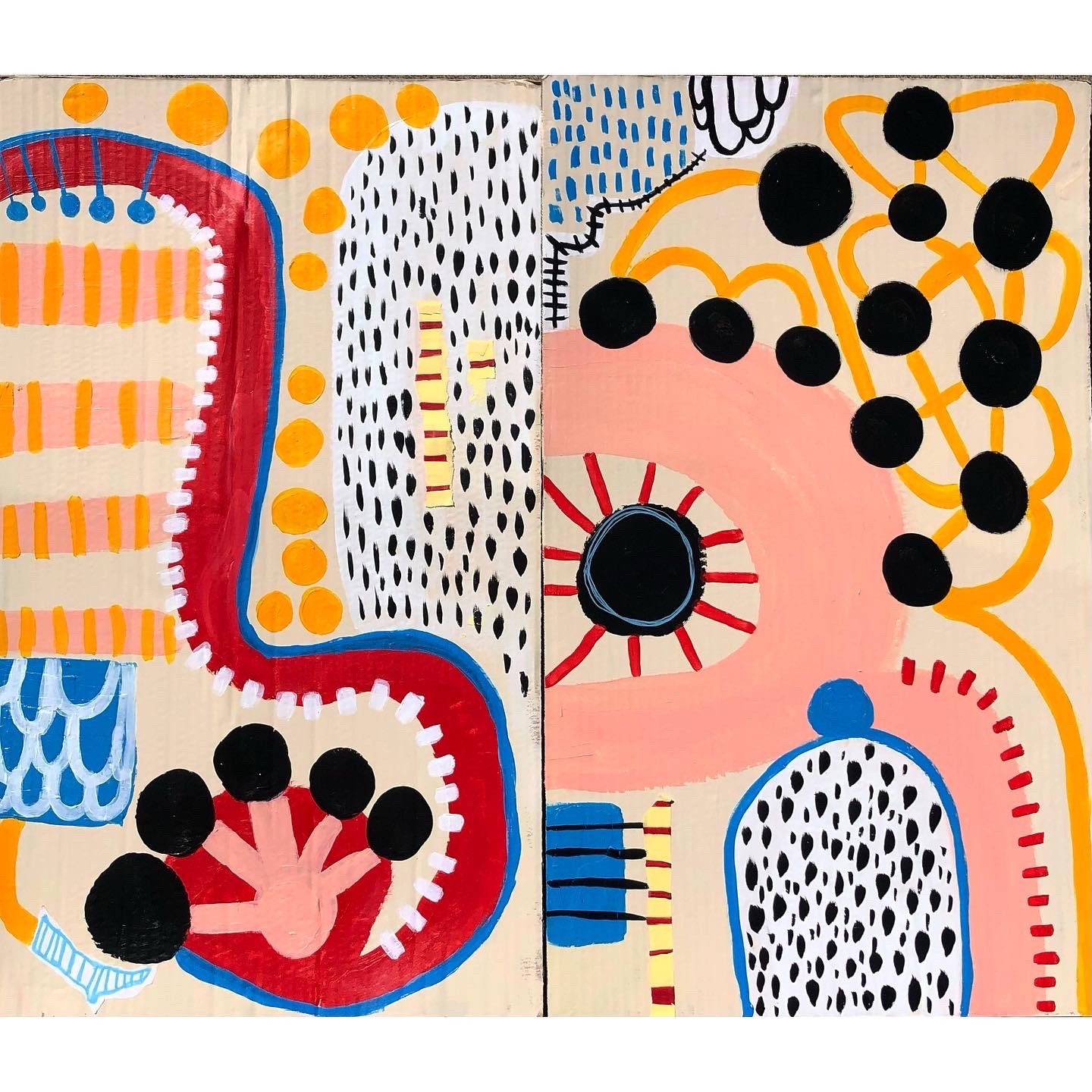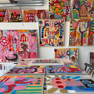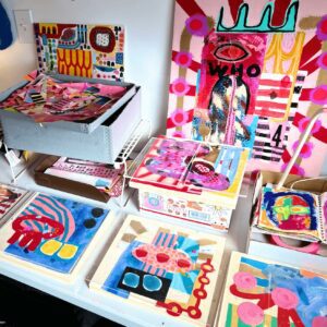I create my work by balancing form and bold color to create dynamic compositions with layers of texture using paint, ink, intentionally scavenged materials, and lots of intuition. It’s textural, one-of a kind, and a full-body experience!