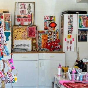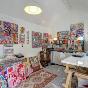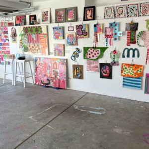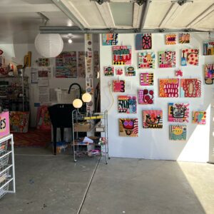 My studio is a true home studio, located in my garage. During the Open Studios weekends, every wall and nook and cranny of the space will be full of artwork. Hanging out and exploring is encouraged! Come to my studio for a retinal blast, and stay for the fun!