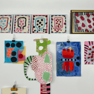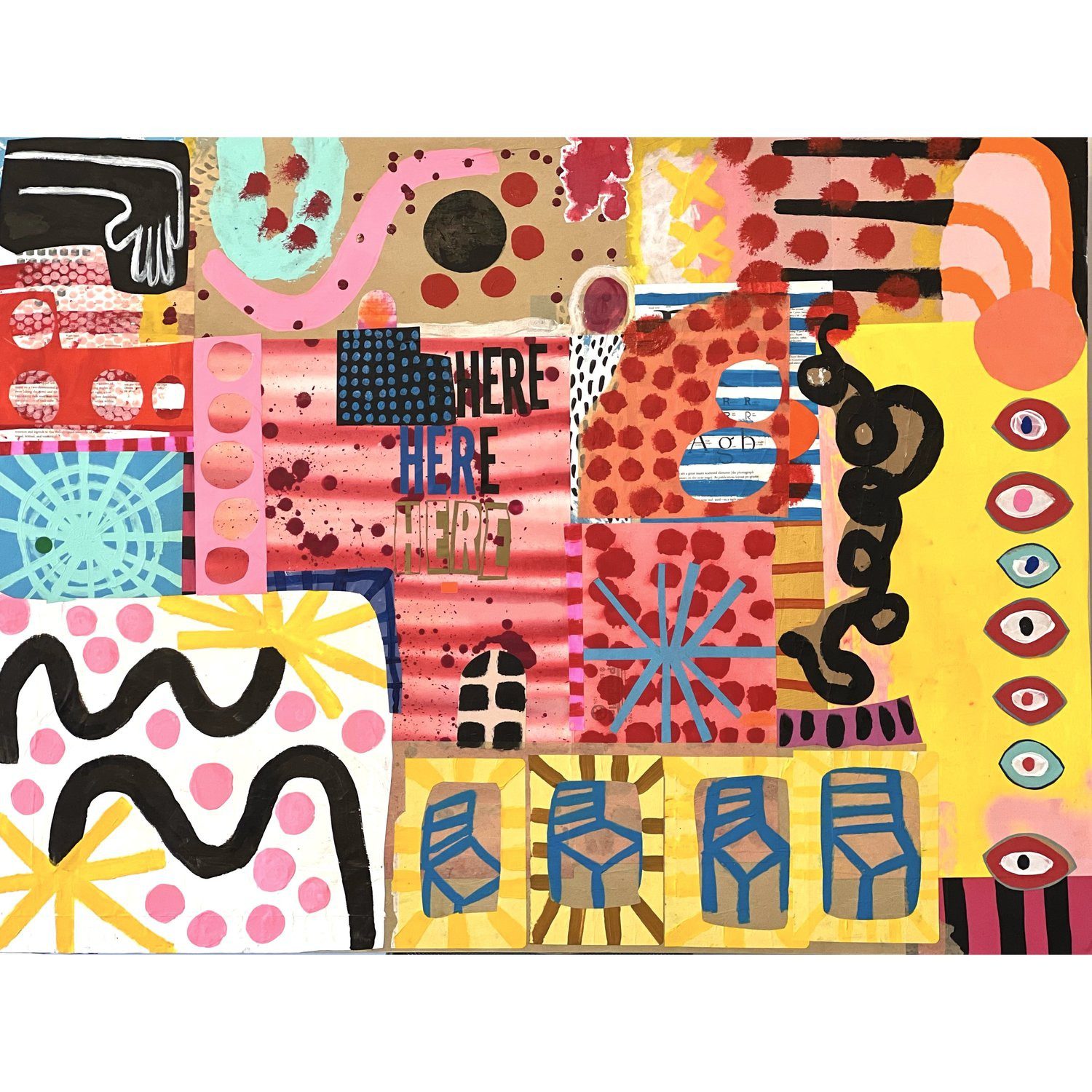 In my abstract collage work I explore big ideas like “Our Origins” to everyday concepts like “Office Life”. The most common comment I hear about my work is “It makes me happy!”