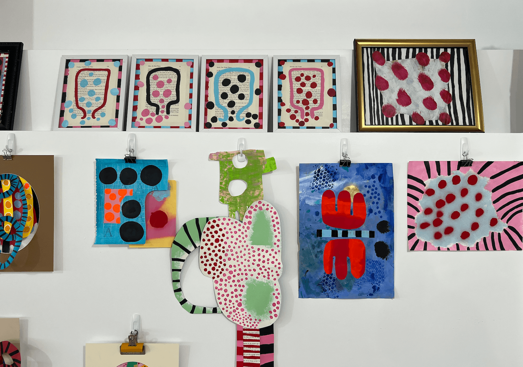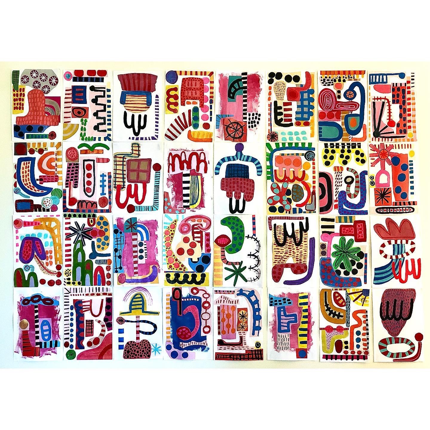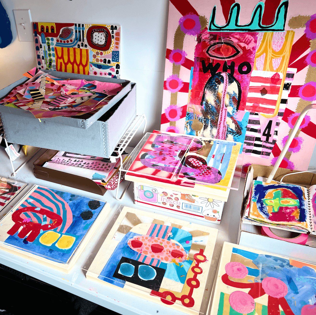 In my abstract collage work I explore big ideas like “Our Origins” to everyday concepts like “Office Life”. The most common comment I hear about my work is “It makes me happy!”