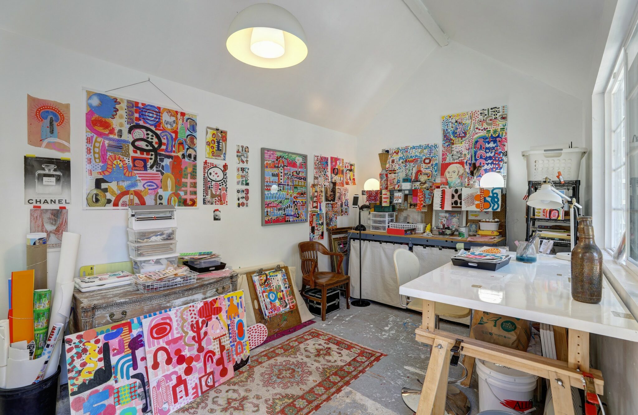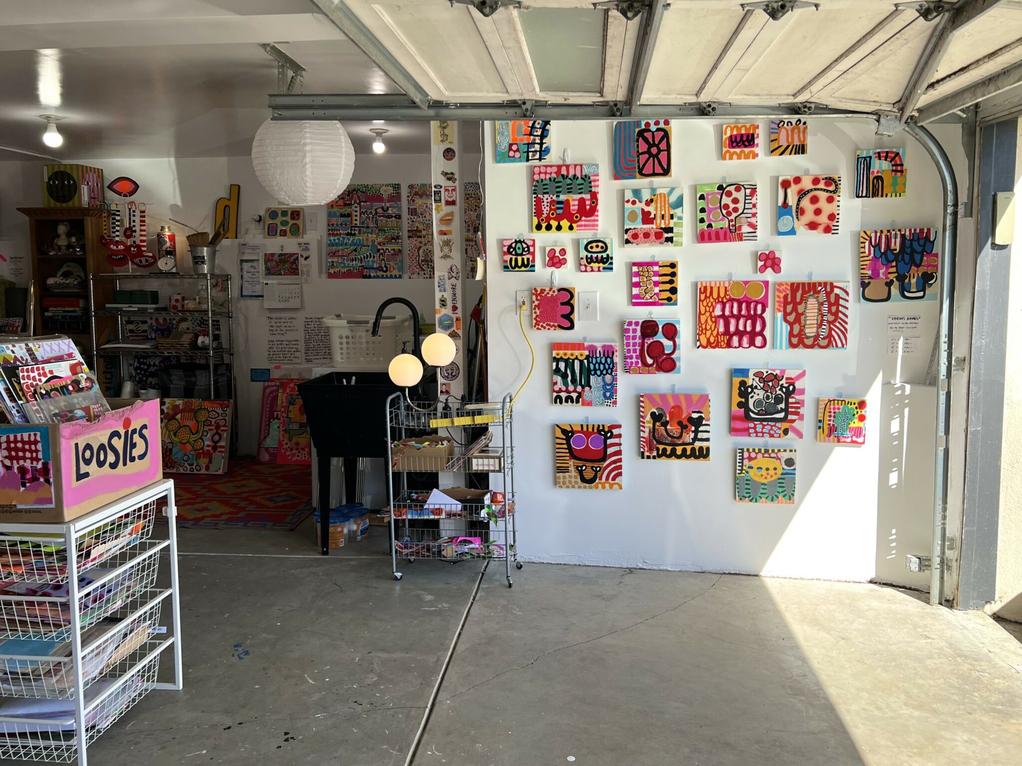 My studio is a true home studio, located in my garage. During the Open Studios weekends, every wall and nook and cranny of the space will be full of artwork. Hanging out and exploring is encouraged! Come to my studio for a retinal blast, and stay for the fun!