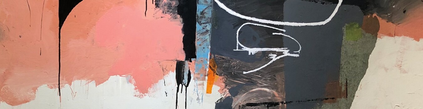 Gordon Studer’s earthy, confident abstracts are rooted in his discipline as an award-winning commercial illustrator, lending his work a strong, graphic cadence. The result speaks to liminal experience, interstitial time, and dreamscapes in deliberate forms in black atop a palette of ochre, sky blue, and crushed clays. Having studied fine art at Penn State, he went on to teach at the California College of the Arts, and enjoyed a 25 year career telling visual stories for Fortune 500 corporate clients and major media outlets. His background is evident as he applies an intentionality to his paintings, delivering on a specific narrative, inviting the viewer to a purposeful encounter. Based in Sausalito, California, he once experienced a bout of complete amnesia, allowing him to refresh his perception of the natural world and question concepts such as imagination, dream, and recollection.