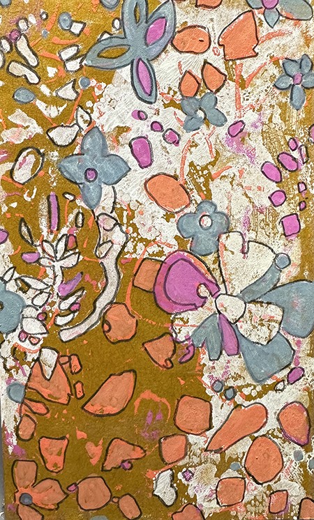 My resulting works are highly textural and full of color. They provide an element of surprise for the viewer when the details are seen up close. I look to use simple materials and enjoy the experimentation and the challenge of elevating them to something that is other.