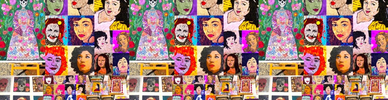 I am inspired by and celebrate the connections between color, textures & mediums. Spirit skulls and women’s stories are my main subjects. Embroidery is my primary medium.