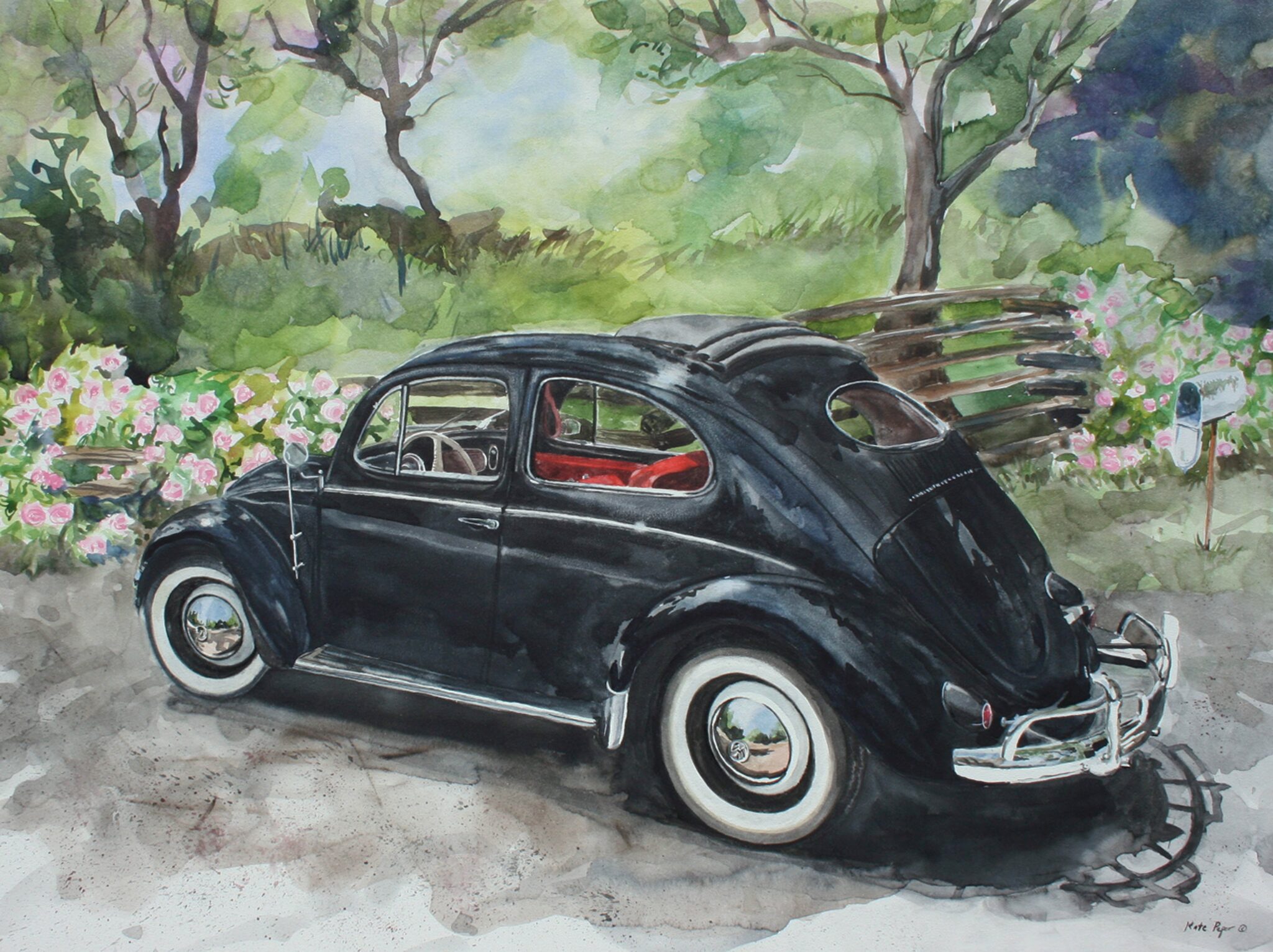 I am drawn to the often-overlooked landscape of disrepair of Northern California. My paintings of old mailboxes, VWs and West Marin scenes reflect humor and recognition of our unique life here. There is a laid-back quality in our world that still exists between encroaching developments and high-tech business. The subjects delight me as I paint them but also remind me they are a record of what’s fast disappearing.