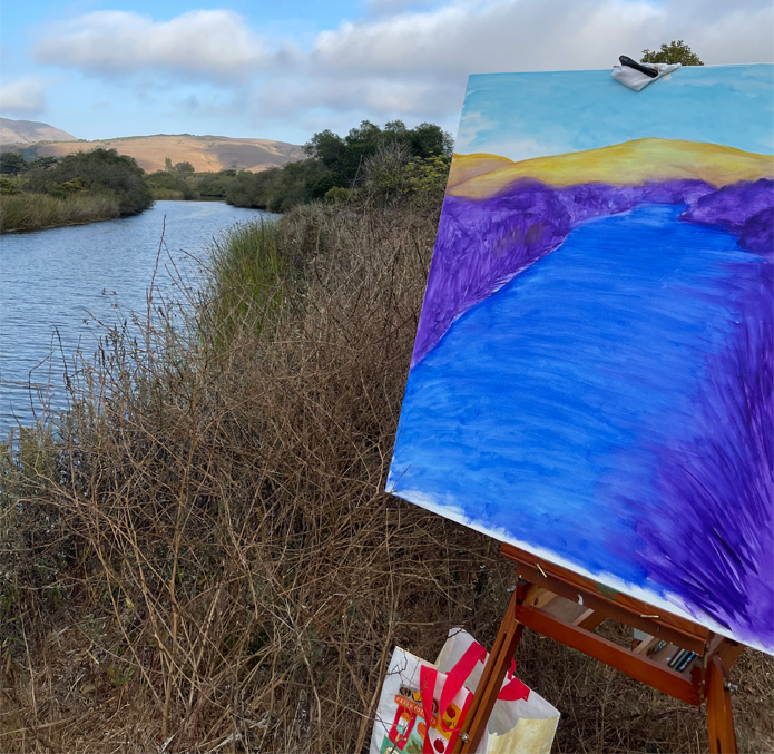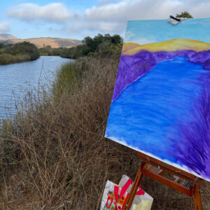Hi All, I’m a California landscape painter working in oils. I work primarily in Plein air approach on square formats. I also love conveying mystery and whimsy and often paint birds, rabbits, cats, and dogs at play. I am drawn to the coastal hills and majestic oaks and have spent a lot of time out in Point Reyes over the pandemic. Paths are also a favorite theme.