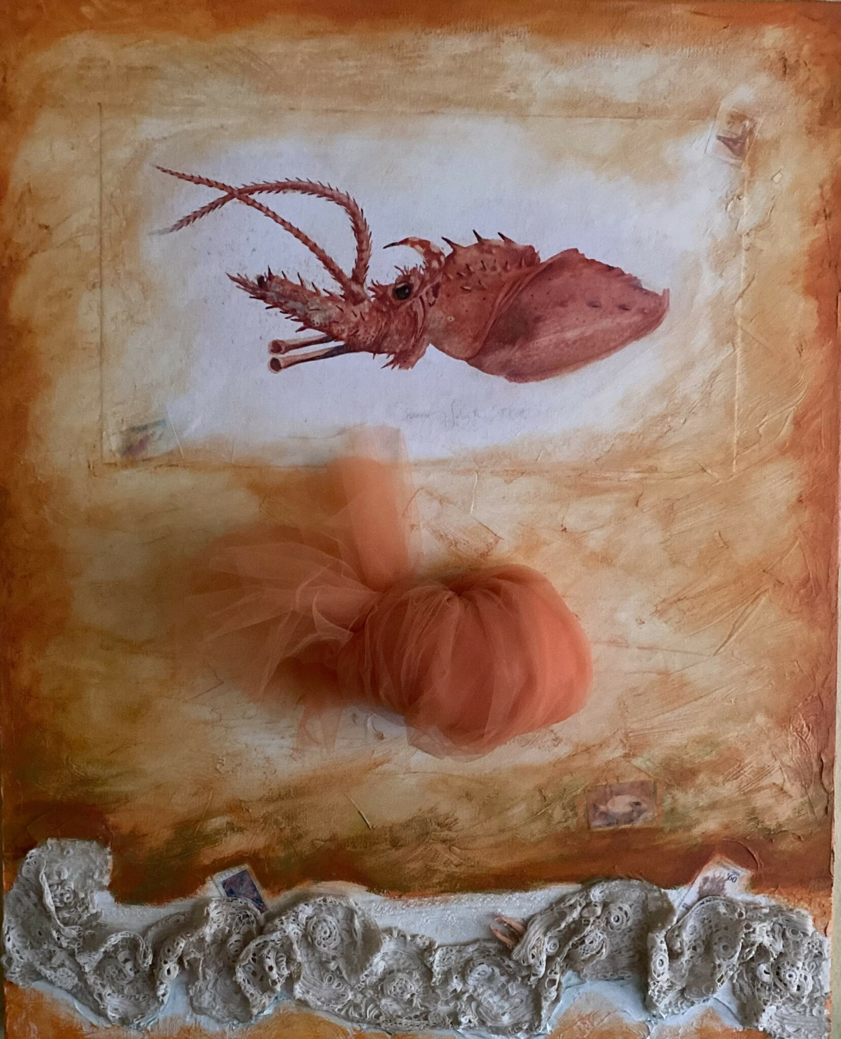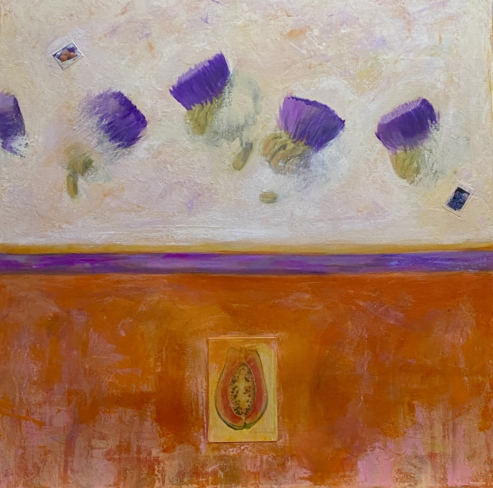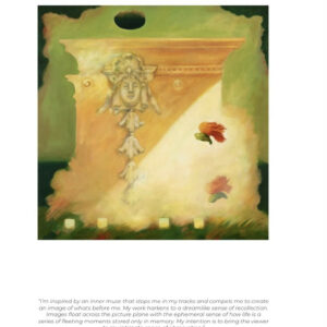 I keep a dream journal, referring to it for inspiration. I draw or paint subject matter floating across the picture plane in a dreamlike state of recollection tied together by a common theme. Recent works created during lockdown include color fields inspired by patterns found in nature and detailed ink drawings on paper. I also include fabric in some works creating relief to achieve a more tactile experience. To celebrate your love for something or someone is a sacred thing. I consider my work “a gift from Gaia.” It’s my way to share with the viewer my own personal space of observation.