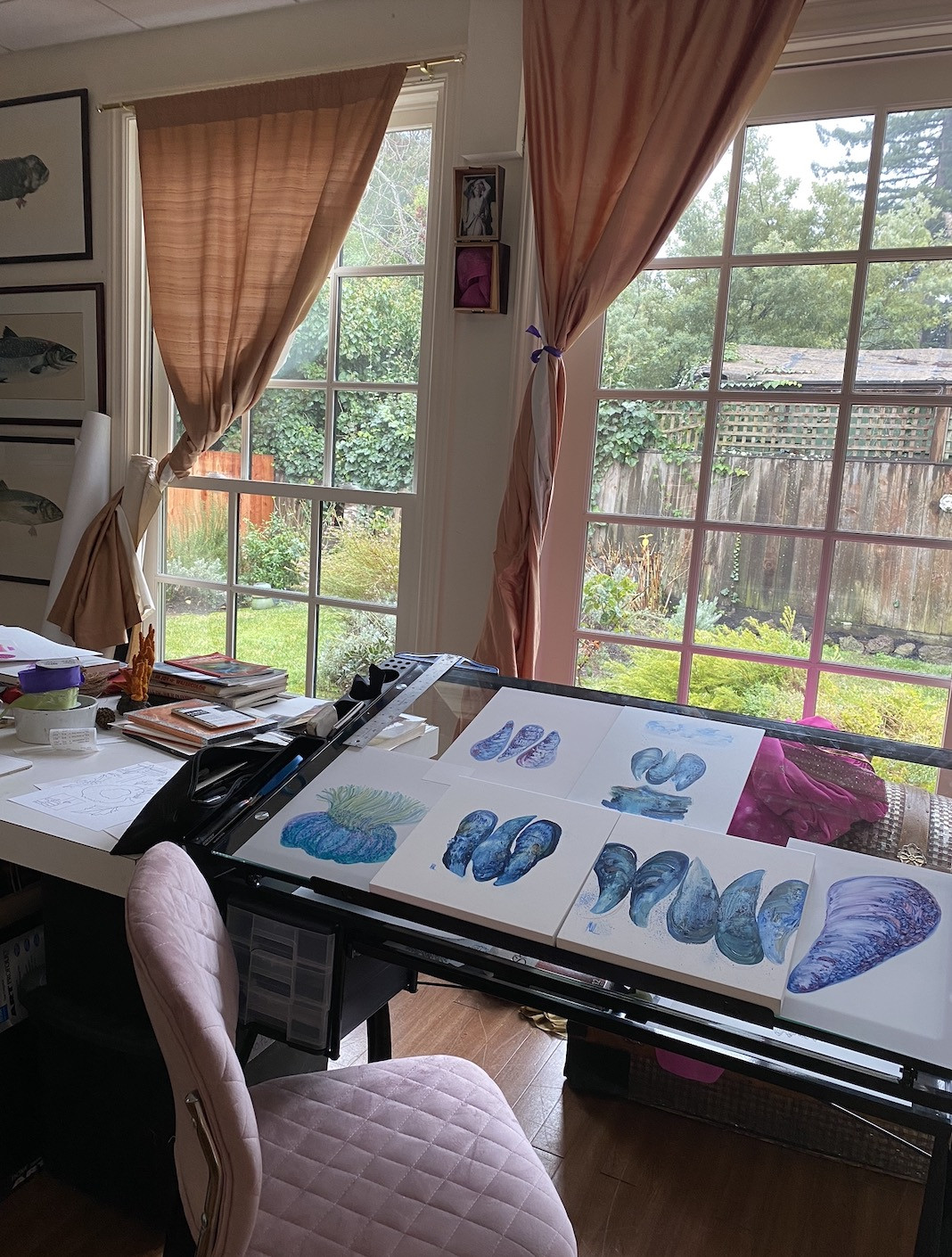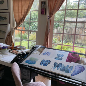 Born in NJ, Monica Violet Loncola spent her formative years along the Atlantic Coast and NYC. She received her BFA in studio arts from Rosemont College in Bryn Mawr, Pennsylvania. Post graduation, she continued studies in Medical Illustration. She relocated to Northern California where she presently maintains her studio. Creating original and commissioned works, many of her illustrations and paintings combine a variety of media and symbolic images juxtaposed in a dreamlike state of recollection. Ms Loncola illustrates a wide range of subject matter. ‘Her technical prowess for detailed realism and her ability to deftly fuse it with abstraction achieve works of art that are an eloquent manifestation of visual synergy.’ Manhattan Arts Magazine Ms. Loncola has taught art in Marin County Schools over the past 25 years. Ms. Loncola was invited to teach art to children in the Golden Gate National Parks OutReach program working alongside CA Park Rangers through the Guild of Natural Science Illustrators. Her work has been exhibited in Museums and Galleries in the United States, Japan, Africa and the US Art in the Embassies Program. Her painting “Violet Urchin” was selected for an exhibit at The de Young Museum in San Francisco “The de Young OPEN”, a comprehensive juried show curated by Chief Curators of The de Young and three SF Bay Area artists: Enrique Chagoya, Mildred Howard and Hung Lui. It was a call for entries to showcase SF Bay Area artists during the pandemic lockdown. Her piece was purchased by a SF Bay Area collector for their personal collection. http://www.monicaloncola.com