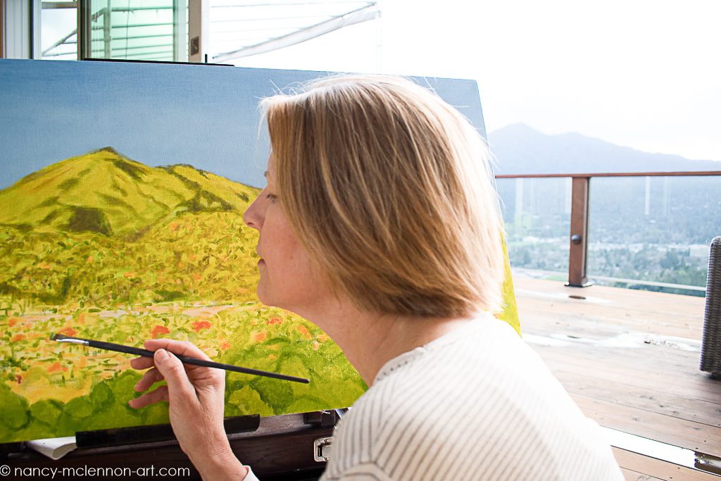 Nancy McLennon was born and raised in Western Michigan. As a child, she loved wandering in nearby woods, daydreaming, and dipping her toes in the little streams. Color and drawing were her childhood passions and from the age of five, she knew she wanted to be a professional artist. This dream lead her to obtain her undergraduate degree from Kendall College of Art and Design, where she studied with many professors, and Fine Artists, Jon McDonald. and (the late) Curtis Johnson. Nancy enjoys living on an insanely steep hillside, where she can view and paint Mt. Tamalpais! She regularly paints the iconic landscape. It inspires her to wake up and paint God’s creation right outside of her window.