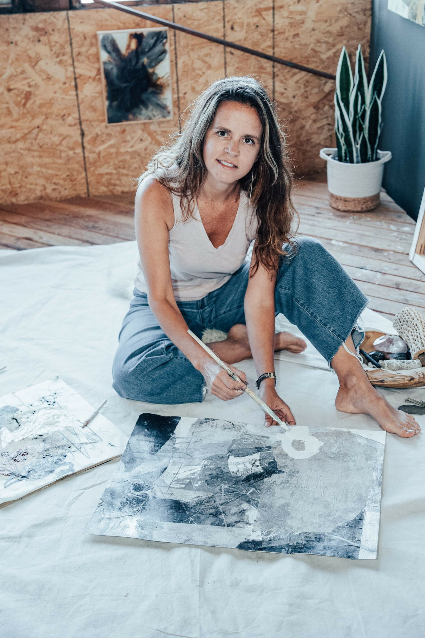 Hi, I am Paula Valenzuela, a mixed media abstract painter at the ICB in Sausalito, CA. Originally from Chile, I moved to the Bay Area eight years years ago with my family. I was trained as a psychotherapist and for many years worked with women and young families as they went through life transitions like pregnancy and parenthood. After moving to the Bay Area, I went back to my creative practice and started studying with local artists and painting again. I work on mixed media on canvas and panels, using acrylics, different mediums, crayons and pigments. I work through several paintings at once, using tools to add and remove the layers of paintings that enrich the textures and leave a memory of the process. Most of the works in this gallery are part of my ongoing series “Constellations”. The series refer to that state of wondering , to discover by looking behind the layers, what is visible at first sight and what need to be discovered more closely. Looking at the sky is opening to the unknown, to look how we are connected to the Universe and that time and and space is relative. I invite you to look at my work and enjoy! Contact me if you would like to know more about my process, work or just for fun. You can follow me on: Instagram: @paulavalenzuelaart Facebook: Paula Valenzuela Art Pinterest: Paula Valenzuela Art