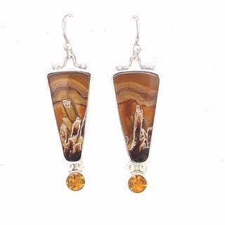 Turkish Stick Agate Earrings with Faceted Citrines by Samuel T Huang