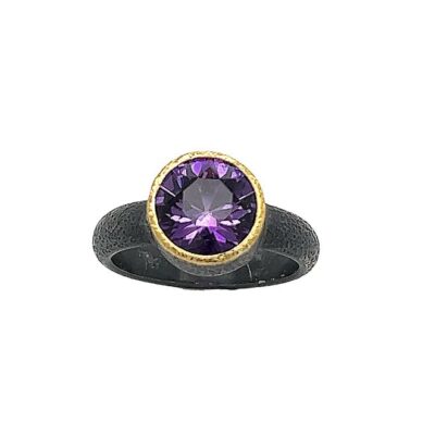 Amethyst Ring set in 22 K gold and patina silver. by Samuel T Huang