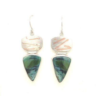 Indonesian Wood Opal Earrings in silver and copper accents by Samuel T Huang