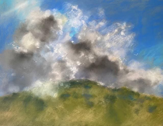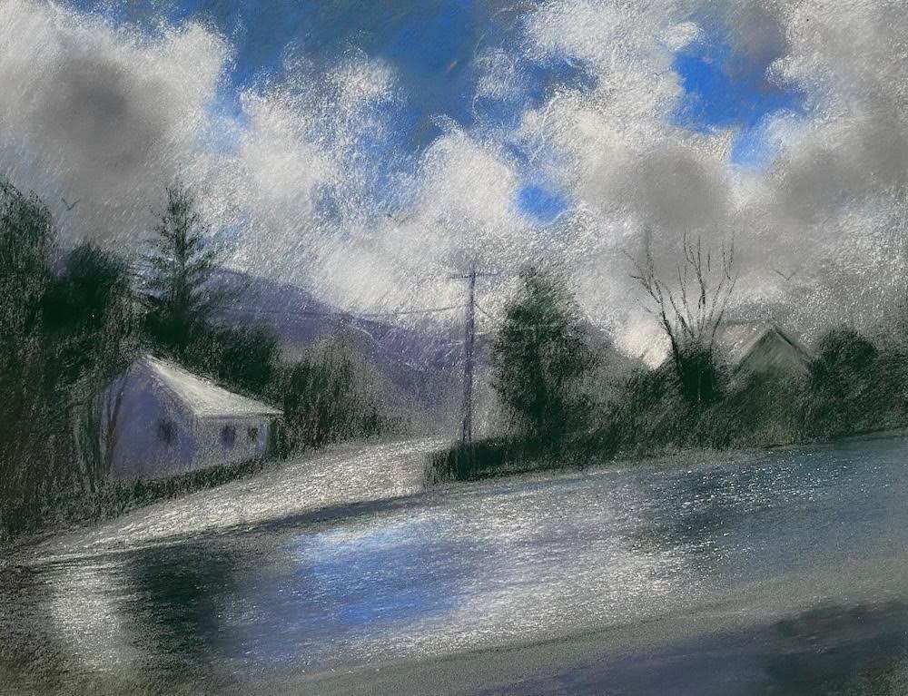 Drawing is my first love, for it’s immediacy, it’s messiness, it’s direct and vital connection between seeing and feeling, and for me, with this crazy world we live in, a brief moment where I’m not thinking but just taking in what’s immediately before me. Similar to gardening, where I can’t keep my gloves on, I like getting my hands dirty. I enjoy the challenges of drawing clouds/ weather, and the beginnings and ends of the day when the light and atmosphere are constantly changing. For me, the drawing medium seems the best and the most direct means of achieving this.